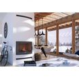 Задняя стенка выполнена двумя слоями и именно она снабжает топку основной массой воздуха. В этом так же участвует зольник с перфорацией с возможностью выемки и колосниковая решетка, занимающая свое обычное место на дне камеры сгорания. Тягу изменяет круглая шиберная заслонка в дымоходе поворотным рычагом на передней панели. На всей поверхности короба расположены радиаторные пластины конвекционного действия. Решетка для удерживания дров во время горения, размещена у самой дверцы и в первую очередь служит безопасности. Вы можете купить топку для камина NORDflam FALCON PANORAMA 15 кВт и не только вмонтировать в стену, но и установить ее в готовую пристенную каминную облицовку, если вам позволяет площадь. Это придаст вашему камину величественность и королевское достоинство.